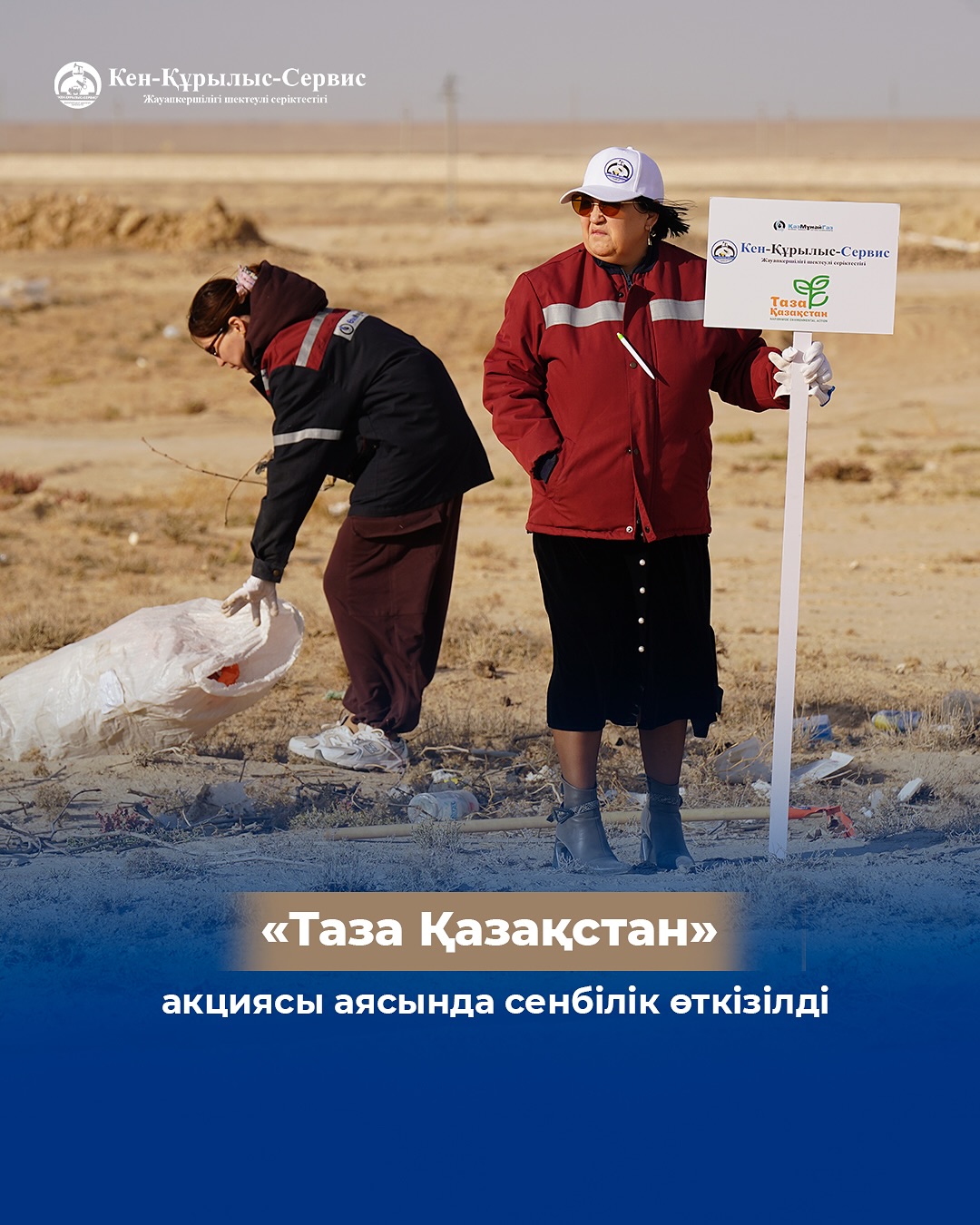 «Кен-Құрылыс-Сервис» ЖШС мекемесінің қызметкерлері қала аумағын тазалау және абаттандыру жұмыстарына белсене қатысты.